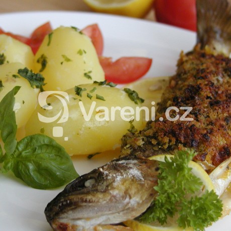 Pstruh s česnekem a bylinkovou krustou