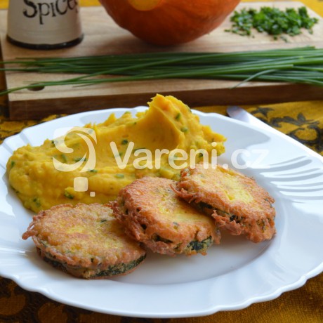 Smažená cuketa v sýrovém těstíčku s dýňovým pyré