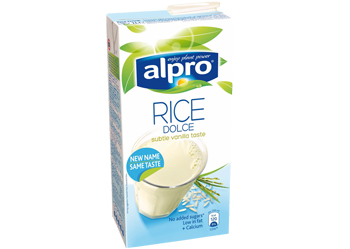 Rýžový nápoj Alpro je stoprocentně přírodní nemléčný nápoj, který se vyrábí z nejkvalitnější hnědé rýže. Nápoj je sladký, krémový a jemný. Oblíbí si ho všichni, kterým chutná mléčná rýže. Obsahuje vitamín D, který podporuje správnou funkci imunitního systému. Litrové balení je k dostání v sítích prodejen Tesco, Interspar a Makro.