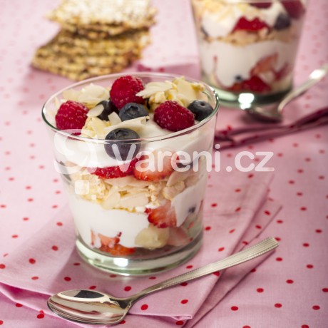 Trifle s letním lesním ovocem a rýžovými silouette