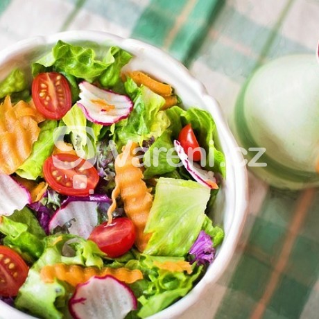 Při přidávání zálivky do salátu pamatujeme na to, že zálivka má zeleninu jen z části obalit a ochutit, neměla by v ní plavat.