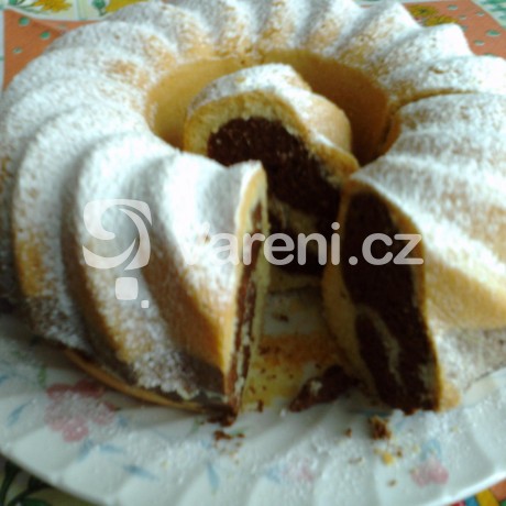 Těsto nalijeme do tukem vymazané a strouhankou (hrubou moukou) vysypané formy a upečeme v troubě vyhřáté na 180 °C dozlatova.