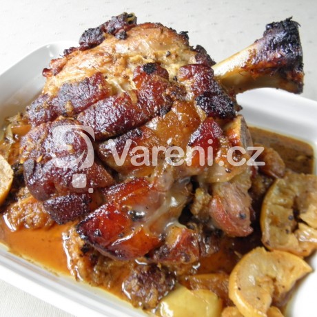 Pečené koleno s křenem a jablky