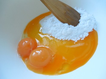 Žloutky promícháme s cukrem, nesmí nám však začít pěnit, to není u créme brulée žádoucí.