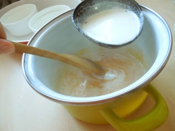 Do žloutků přilijeme horkou smetanu a ve vodní lázni připravíme za stálého míchání hustý krém.