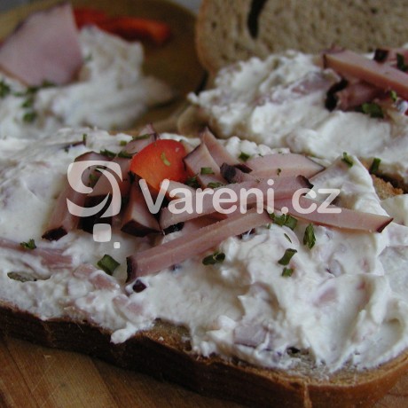 Na pomazánku si připravíme 1 kelímek ricotty, 1 kelímek husté zakysané smetany, 50 g balkánského sýra, 2 - 3 stroužky česneku, čerstvou pažitku a sůl k dochucení.