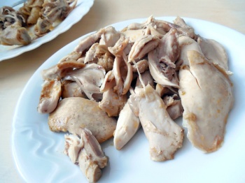 Z masa sundáme kůži a stehno necháme celé, nebo obereme od kosti.