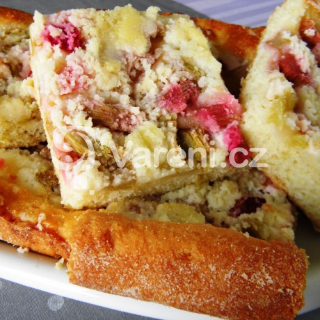 Jemný koláč s rebarborou a jahodami