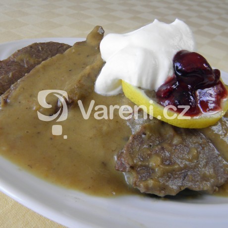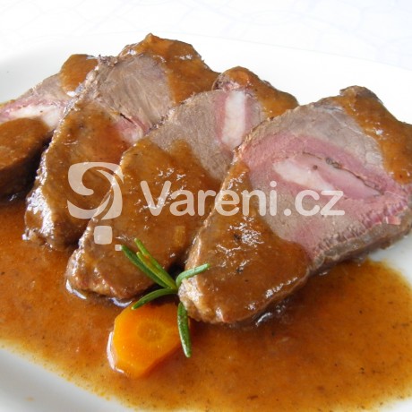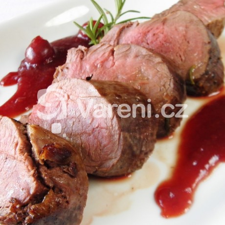 Špikovaná kančí kýta se šípkovou omáčkou a perníkovým knedlíkem
