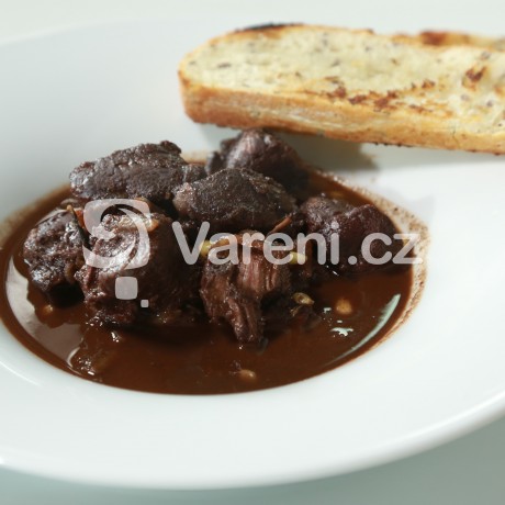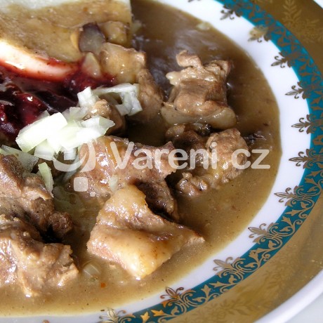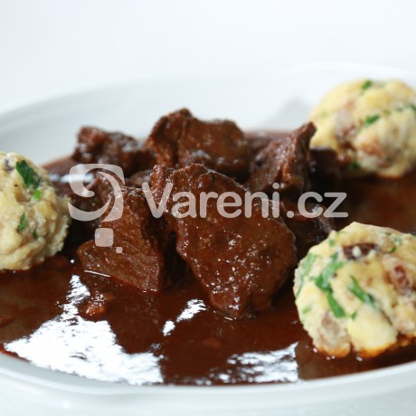 Kančí guláš s uzenou paprikou a špekovým knedlíkem