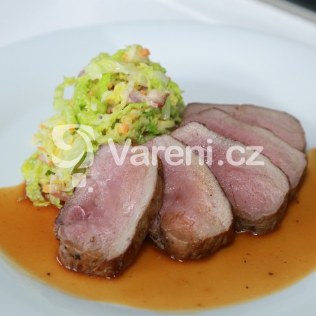 Kančí hřbet se šípkovou omáčkou a kapustou