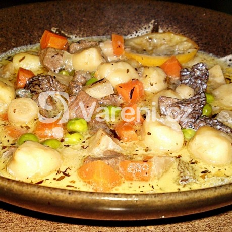 Polévka ragú ze srnčí kýty se smrži a estragonem