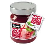 Panna Cottu z mléčné krupicové kaše vyklepneme z formiček na talířky, přelijeme horkým ovocem Hot Fruits s malinami a podáváme.